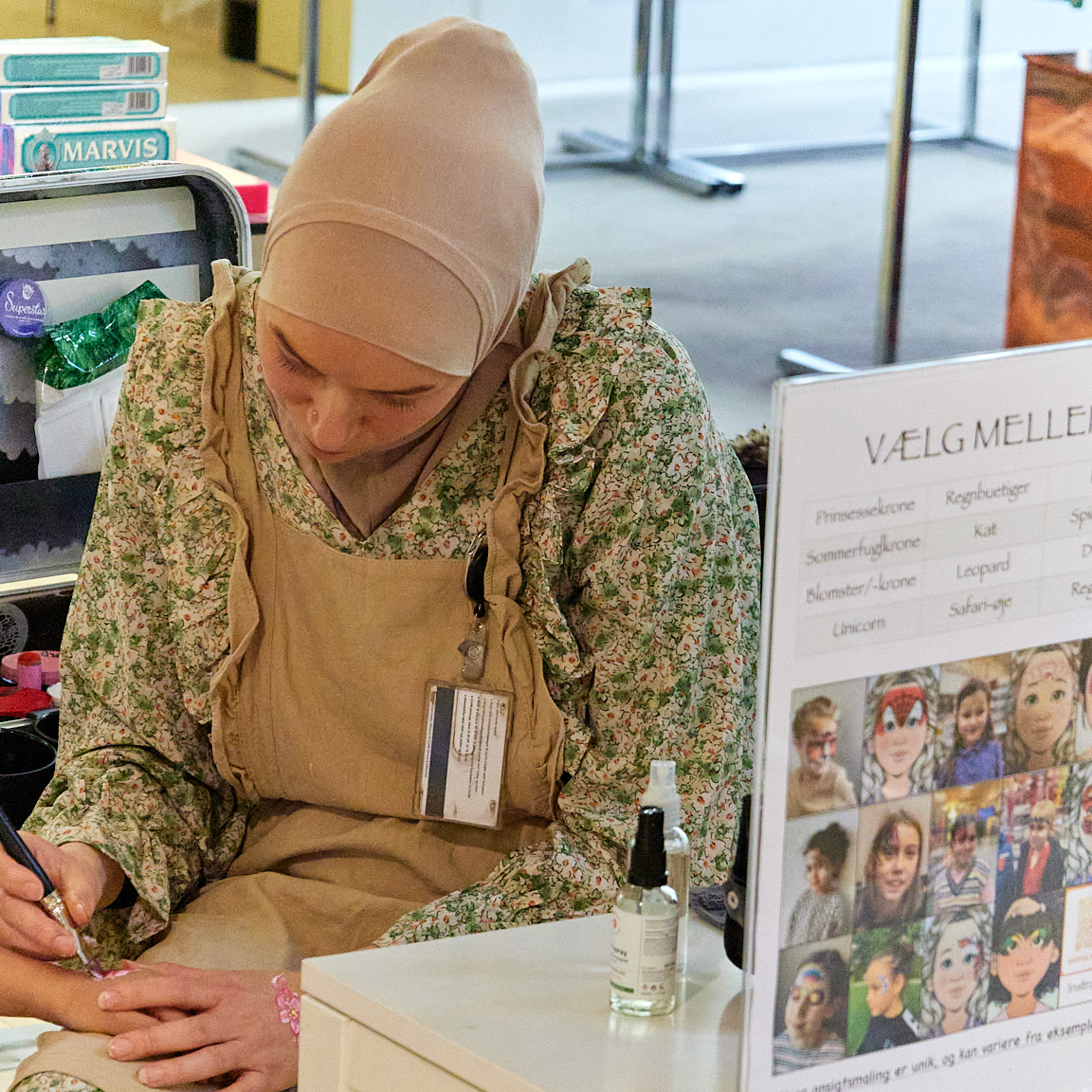 Our skilled face painter often visits the kids’ department on the 3rd floor.