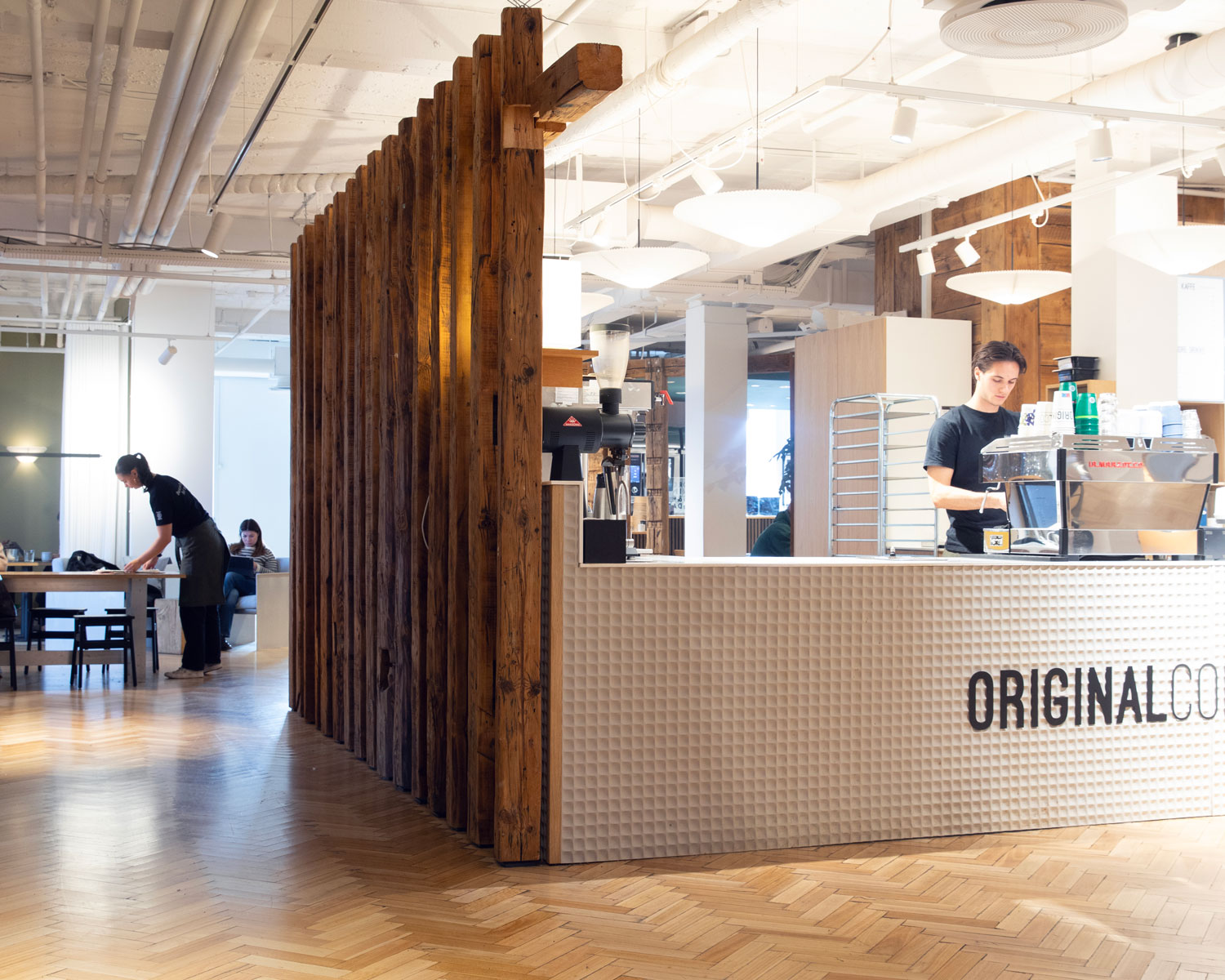 Original Coffee forener æstetik, smag og nærvær i hver eneste kop. Nyd en velfortjent pause i en af de to caféer på 4. etage, hvor kvalitet og personlig service er i centrum.