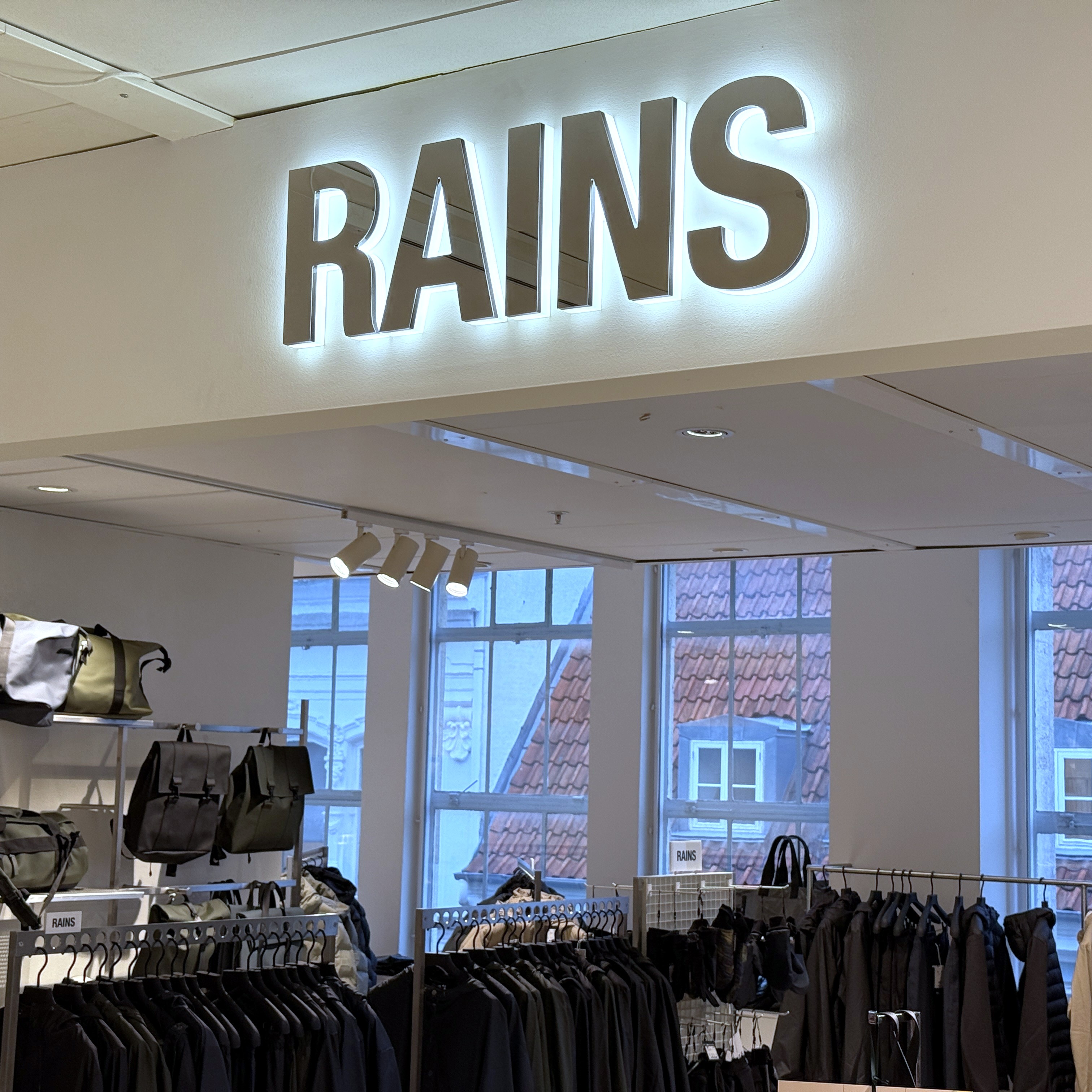 Rains tilbyder minimalistisk regntøj med mat finish, vandtæt funktionalitet og et skarpt urbant udtryk.