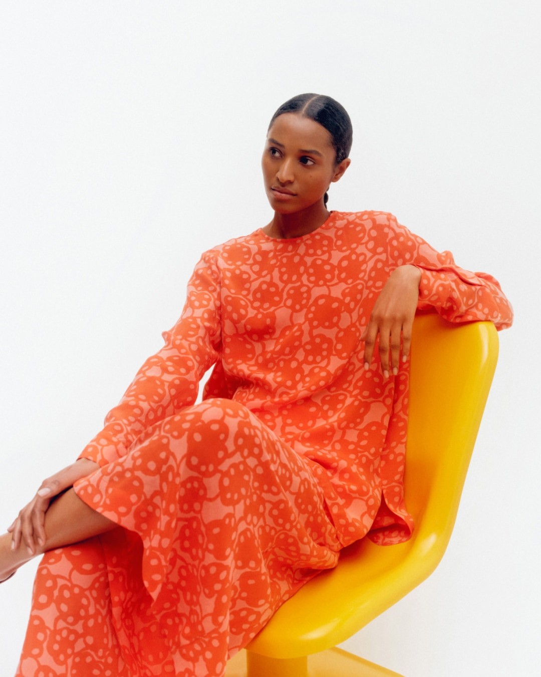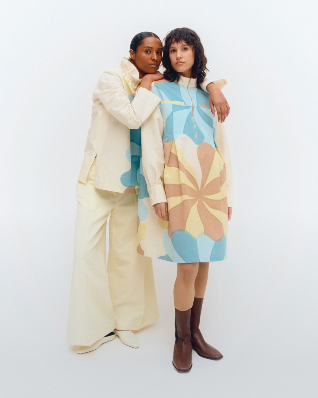 Marimekkos Pre-spring 2023 kollektion henter inspiration fra Retro Futurism. En omhyggelig udvælgelses proces af Marimekko mønstre fra arkivet er kombineret med retrospektive modetegn og mere ansvarlige materialevalg. Den nye sæsons garderobe leger med lys, mixet af arkitektonisk og organisk form og det fascinerende rum mellem positivt og negativt.
