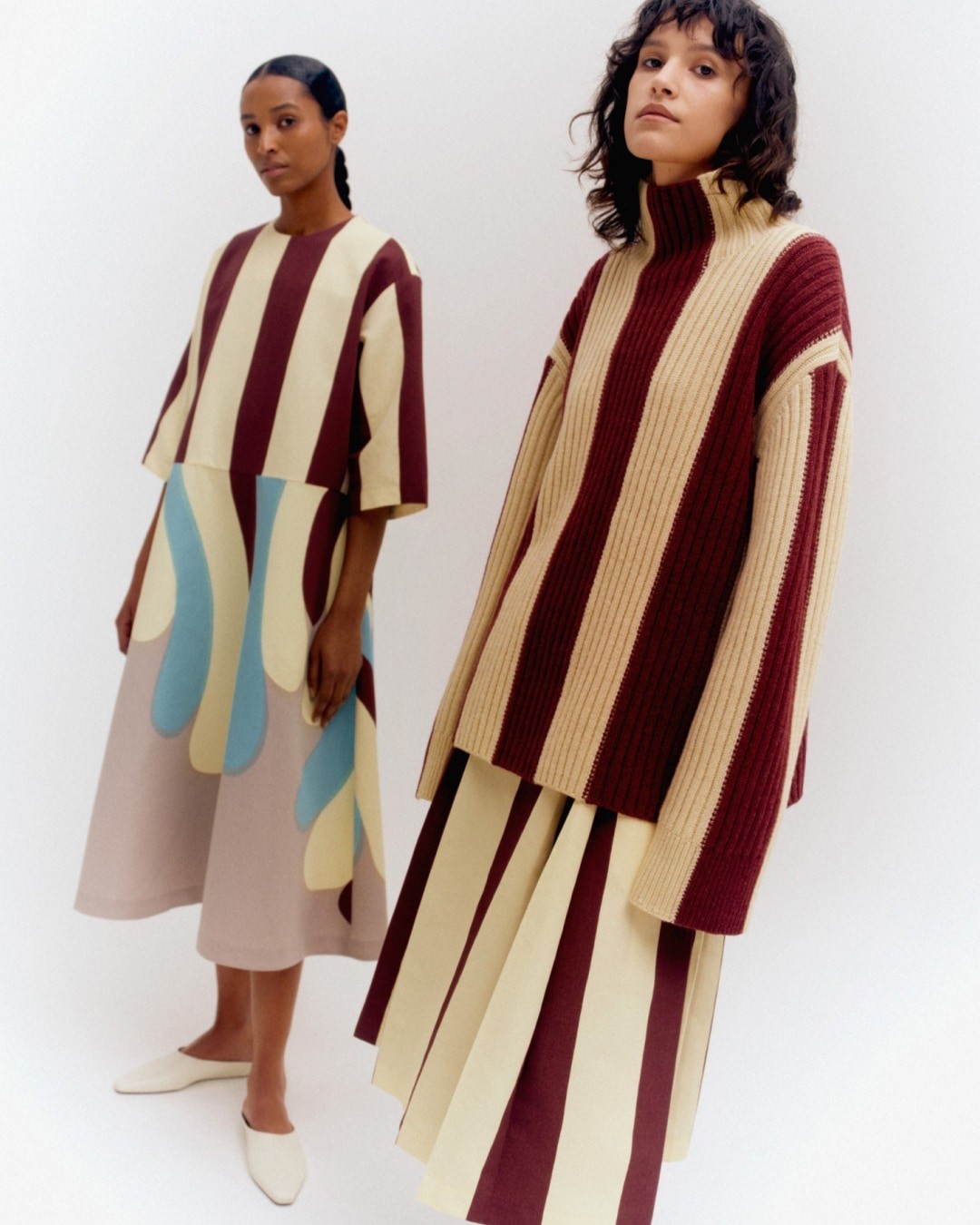 Sæsonens sporty reference er tydelig i de mange striber, der ses på de fleste print.